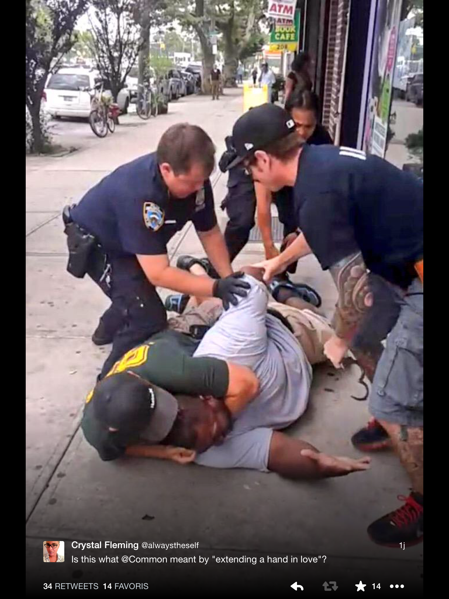 Common’s words reinforce the obscene and remarkably persistent slander that people of color (not white folks!) are the ones who actually need to learn how to love.  No one who has seriously studied race and racism would conclude that the history of racial oppression boils down to people of color having a love deficit.  And yet, the fact is, minorities who stand up against racism are routinely accused by actual racists of being hateful, of not “loving enough”. Common’s absurd #HandInLove reinforces this narrative, and, in so doing, minimizes the racial violence that ordinary people of color experience on a daily basis.
