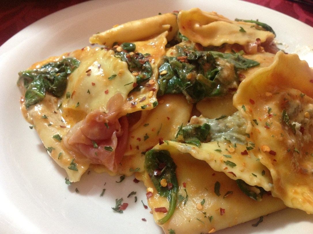 Fresh ravioli with prosciutto, spinach & gorgonzola in a light butter sauce